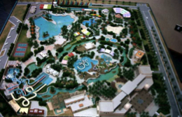 Volley-ball courts with many Fast Food Outlets, (each of its own colored Patios) and varieties of shades (in different shapes & material). A scenic landscaping and hardscaping featuring Grottos, entrance pergolas, fountains , waterfalls and islands all accessed by a multi colored and textured paved walkways connected by wooden bridges and lit by decorative lighting fixtures. All external and internal utilities were provided within attractive buildings and structures.