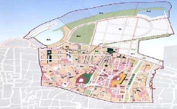 market places, commercial streets as well as financial and banking centers. The vast majority of the built-up area